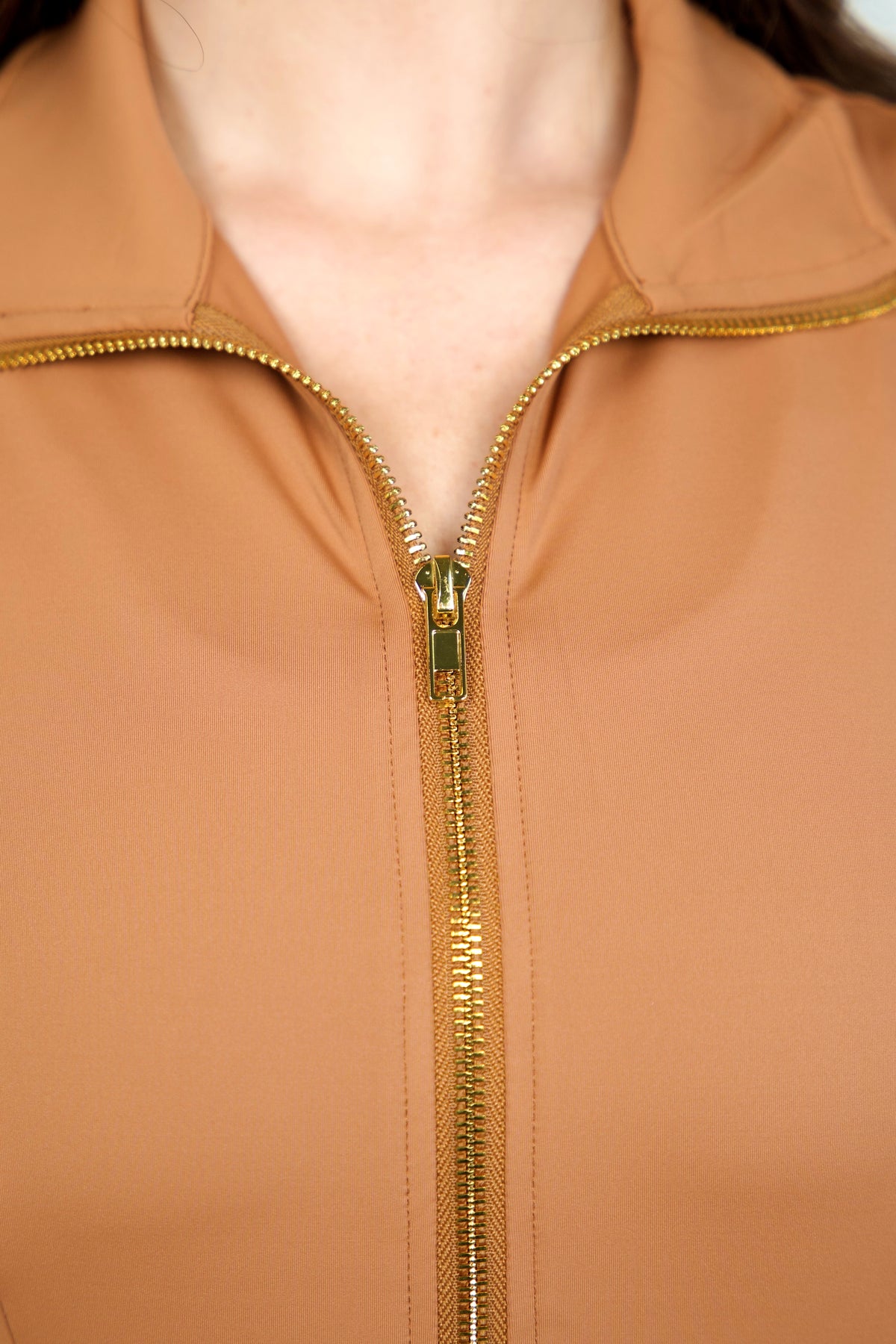 Gold Zip Polo- Camel